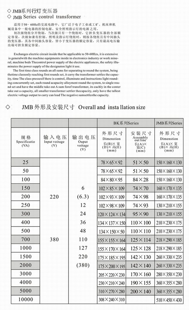 適用于交流50~60HZ交流的電路中,通常用于電子工業(yè)、工礦企業(yè)及局部安全照明的電源之用。